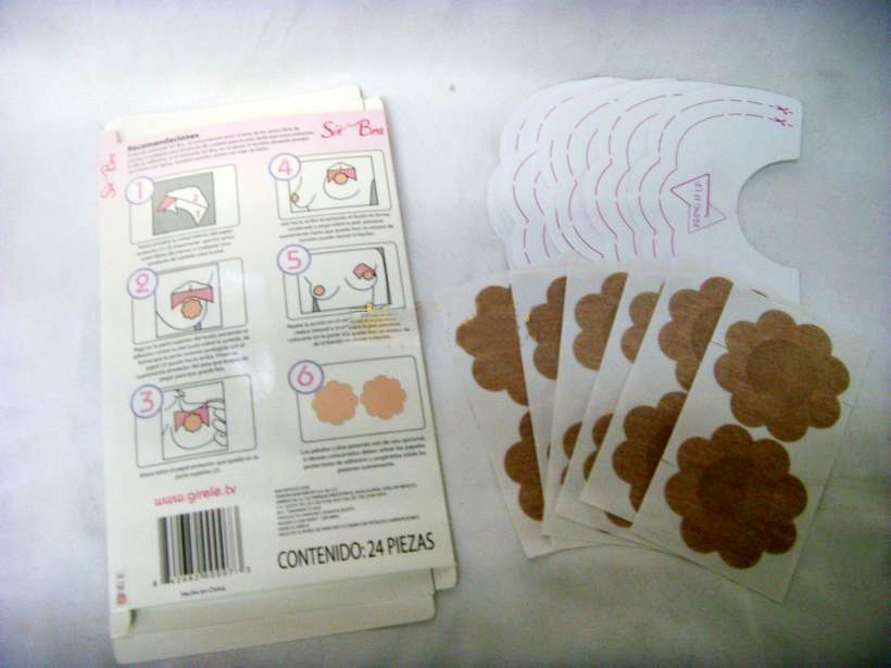 6 pairs of breast-lifting stickers and 6 pairs of flower-shaped nipple stickers.